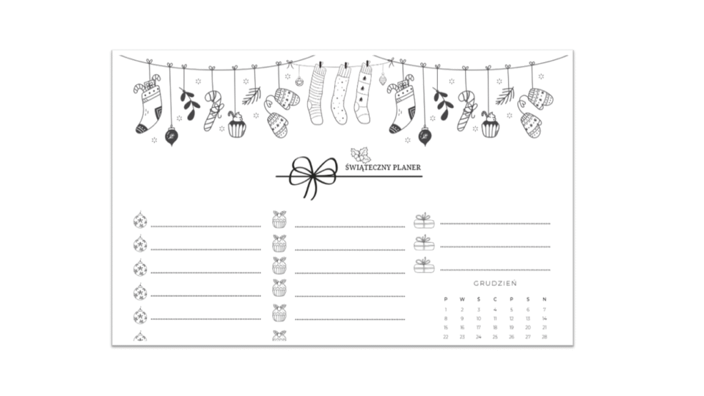 Szablon, który ułatwi Wam zaplanowanie świątecznych przygotowań, tak by móc stworzyć niezapomniany klimat Świąt i by nic, co dla Was i dla Waszych dzieciaczków ważne, nie umknęło Waszej uwadze w natłoku codziennych obowiązków.